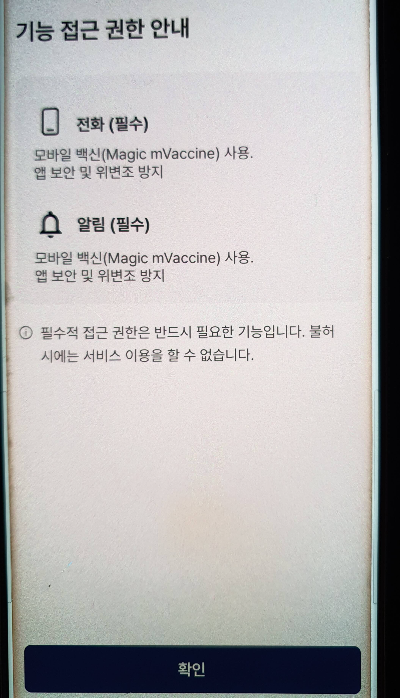 약관 전체 동의를 해주신 뒤, 알림 권한과 전화 권한을 모두 허용해주세요.
