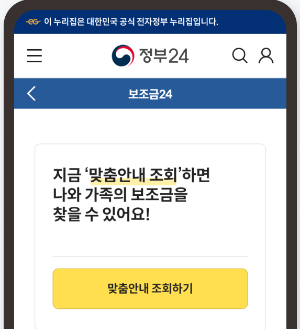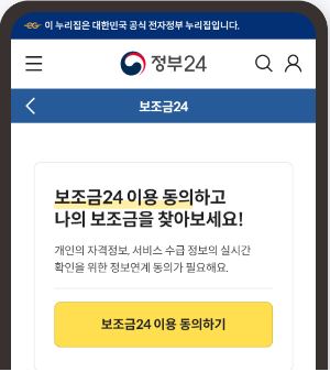 보조금24는 자신 혹은 가족이 받을 수 있는 보조금을 손쉽게 확인하고 신청할 수 있는 정부에서 운영하는 플랫폼입니다. 14세 이상 가족 구성원이 사전 동의하면, 한 집 동거가족(동일세대) 뿐만 아니라 함께 살지 않는 가족(분리세대)의 보조금도 찾을 수 있습니다.