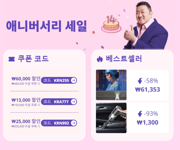 안녕하세요. 알리익스프레스에서 14주년 기념으로 정말 엄청난 세일 이벤트를 진행하고 있습니다.