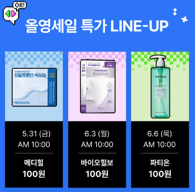 24년 5월 31일부터 24년 6월 6일 목요일까지 진행되는 이번 할인행사에는 올리브영 추천 화장품 100개를 최대 70% 할인된 금액으로 만나보실 수 있습니다. 세일 기간 동안 특가 제품을 놓치지 마세요.