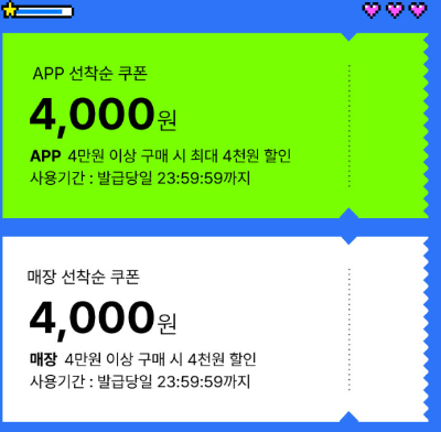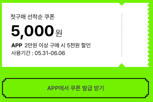 게다가 세일기간동안 온라인 첫구매시 5천원 할인해주는 첫구매 쿠폰도 있으니 APP을 통해 할인쿠폰을 받으시길 바랍니다.