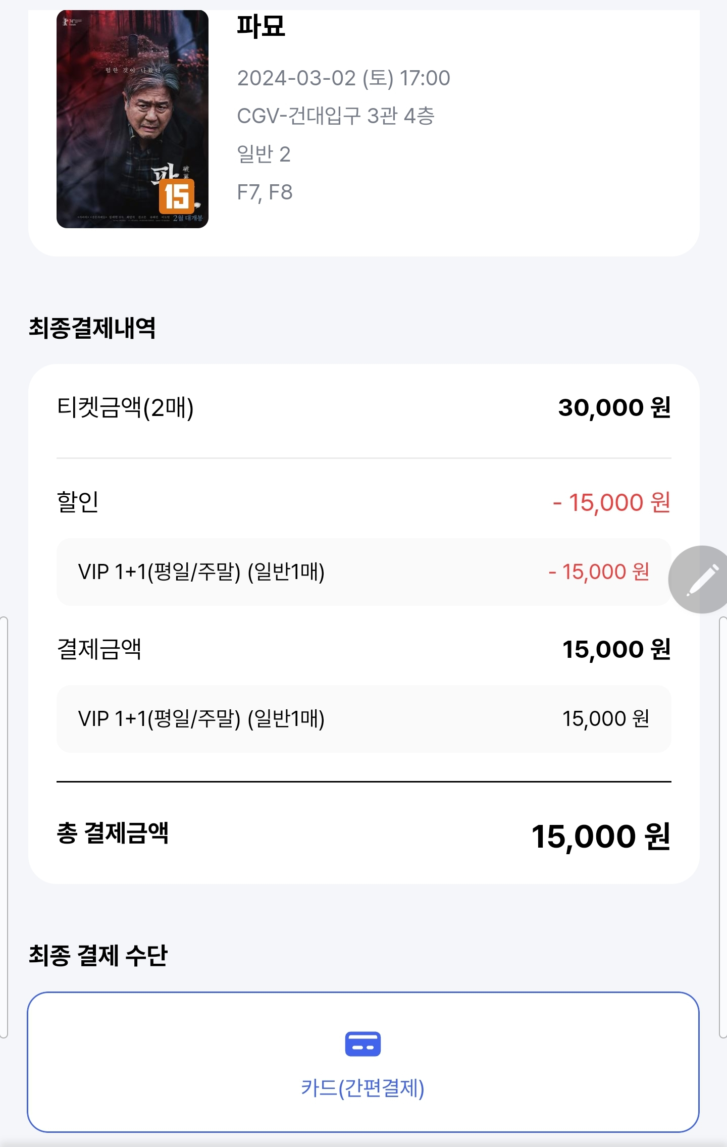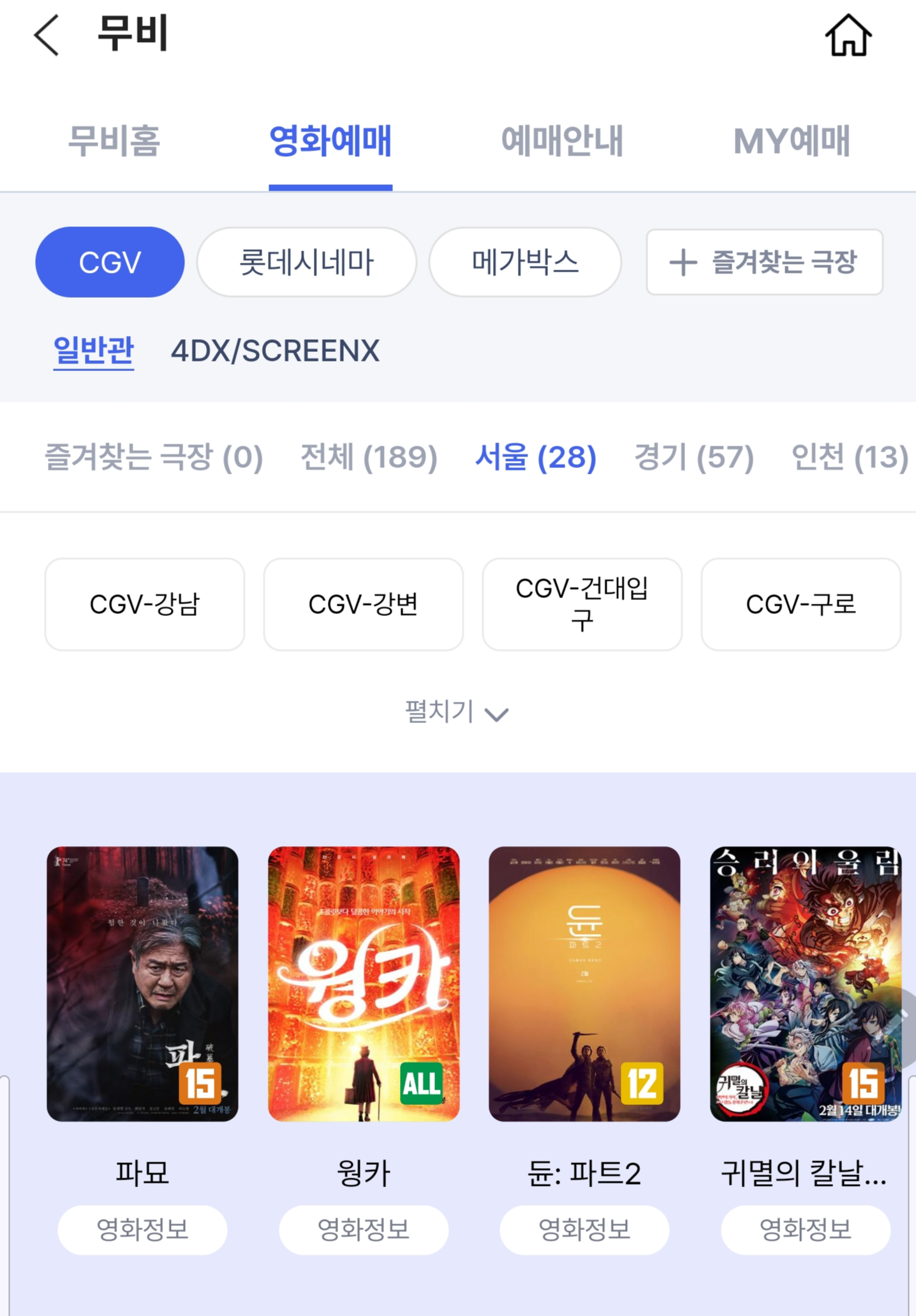 저는 극장은 CGV로 고르고, 영화 '파묘'를 선택해볼게요.
