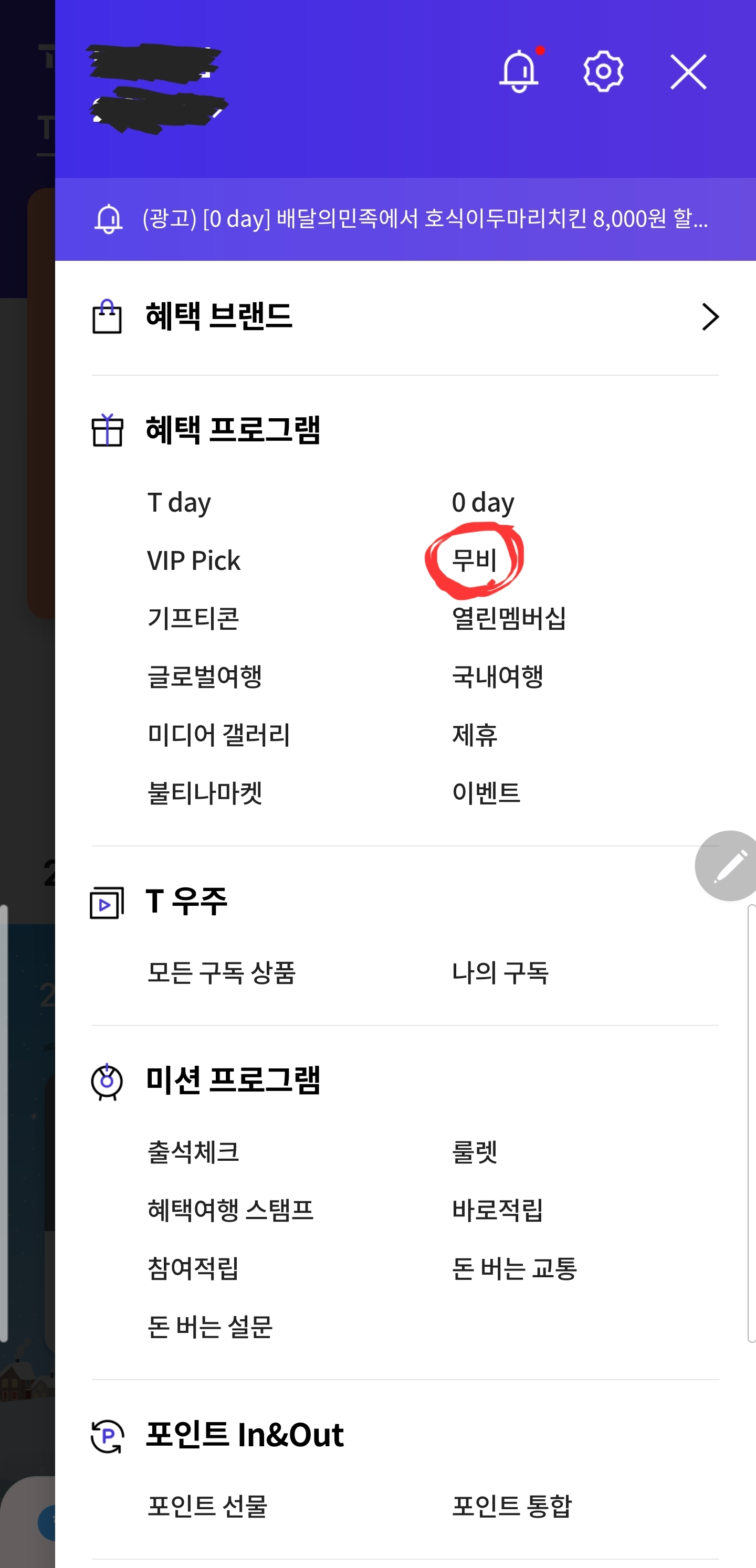 그러면 오른쪽 사진처럼 혜택 프로그램에서 '무비' 프로그램이 보일 거에요.